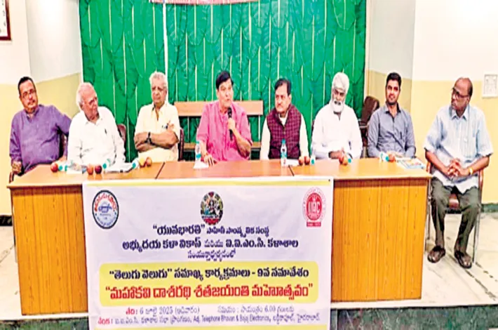 Chief guest Dr. K V Ramanachary, former advisor to the Telangana government, praised the organizers for being the first to celebrate Mahakavi Dasaradhi's Shatajayanti Mahotsavam. Guest of honor Dr. Tirunagari Sathyanarayana, secretary of the Telugu department at Osmania University, highlighted the significance of Dasaradhi's literary contributions.