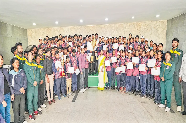Chief Minister A. Revanth Reddy has congratulated Telangana students for clinching the overall championship in the 4th EMRS National Sports Meet-2025. Telangana has won record-breaking medals in the 4th EMRS National Sports Meet-2025 held in Odisha on November 15. Telangana State secured 230 medals in athletics, archery, swimming, gymnastics, boxing, judo, wrestling, weightlifting, taekwondo, yoga, shooting, chess and other events.