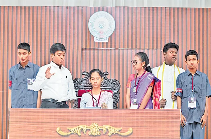 On Wednesday, the usually orderly premises of the Andhra Pradesh Legislature transformed into a vibrant learning arena as a full-fledged mock Assembly sprang to life on a specially created set that resembled the real House.