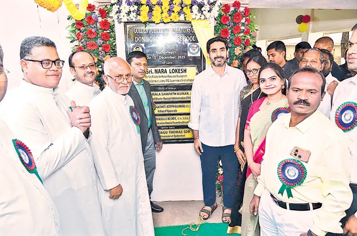 Education and IT Minister Nara Lokesh said on Saturday that values are as important as education and that he has reached this level because of teachers. Minister Lokesh was the Chief Guest at the golden jubilee celebrations of Don Bosco High School in Mangalagiri. Earlier, he unveiled a plaque at the school premises to mark the golden jubilee celebrations.