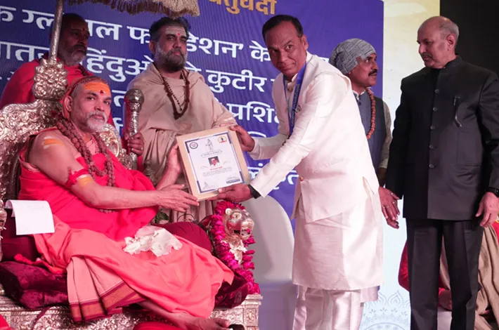 In a distinguished ceremony held in New Delhi—India’s first of its kind dedicated to the divine deities—Shri Narendra Kumar Chaturvedi, Founder and President of Vedic Global Foundation, was honored with the prestigious “Bhagirath Samman”. The honor was bestowed by His Holiness Jagadguru Shankaracharya Abhimukteshwaranand Saraswati Ji Maharaj with his sacred blessings.
