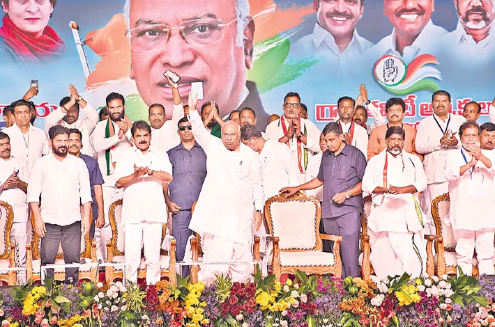 AICC President Mallikarjun Kharge, addressing the gathering, said Telangana will become a model for the nation under Congress leadership. He asserted that just as the party returned to power in Telangana against all odds, it will also form the government at the Centre. He slammed the BJP government for making hollow promises about Pakistan and questioned why they hadn’t acted if they were serious. Comparing Prime Minister Modi with Indira Gandhi, Kharge said unlike Modi, Indira Gandhi had the courage to act, citing her role in Bangladesh's liberation.