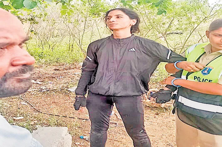 She drove the car at Shankarpally here for about eight kilometres. The woman, who appeared to be mentally disturbed, tried to confront police personnel when she stopped the car. However, police managed to overpower her and sent her for medical tests, a police official said.