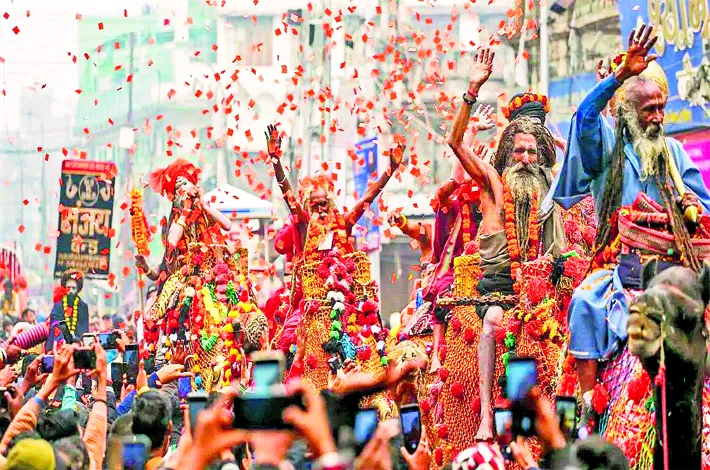 The streets of Prayagraj come alive as these holy men prepare to welcome millions of pilgrims, their rituals and blessings setting the stage for the grand spiritual gathering.