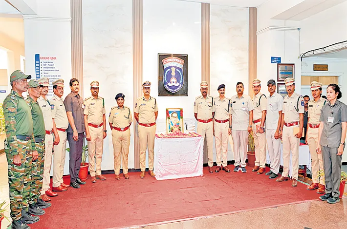 The 135th birth anniversary of Bharat Ratna Dr. B. R. Ambedkar was observed in a grand manner at the Cyberabad Police Commissionerate office on Tuesday. Cyberabad Commissioner Dr. M. Ramesh, Admin DCP T. Annapoorna and other senior officers, along with police personnel, offered floral tributes to the portrait of Dr. B. R. Ambedkar and paid their respects.