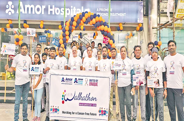 Hyderabad: Amor Hospitals on Wednesday hosted a Cancer Awareness Walkathon to mark World Cancer Day. The event saw enthusiastic participation from residents, healthcare professionals, and cancer survivors across the city, starting early morning in Kukatpally. Participants promoted healthy lifestyles, awareness, and the critical role of regular screenings in saving lives.