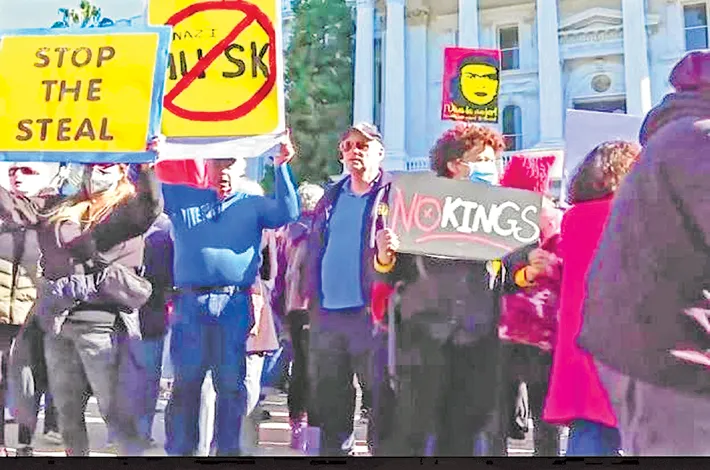 Protesters in Philadelphia and at state capitols in California, Minnesota, Michigan, Texas, Wisconsin, Indiana and beyond waved signs denouncing President Donald Trump; billionaire Elon Musk, the leader of Trump's new Department of Government Efficiency; and Project 2025, a hard-right playbook for American government and society.