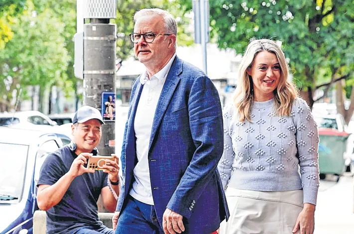 Australia's re-elected PM Anthony Albanese and his partner Jodie Haydon walk in the streets, following his party’s decisive federal election victory -AFP
