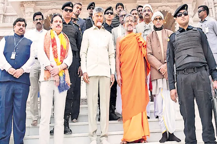 Andhra Pradesh Chief Minister N. Chandrababu Naidu on Sunday visited the sacred Sri Ram Janmabhoomi Temple in Ayodhya, where he offered prayers and had darshan of Ram. The Chief Minister performed special pujas at the temple, marking his visit with a deep spiritual note.