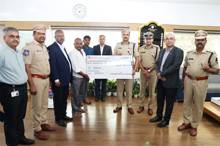 Today, B Shivadhar Reddy, Director General of Police, handed over a cheque of ₹1.05 crore to Mr. Boya Beechupalli, brother of the deceased, at the Telangana Police Headquarters in Hyderabad.