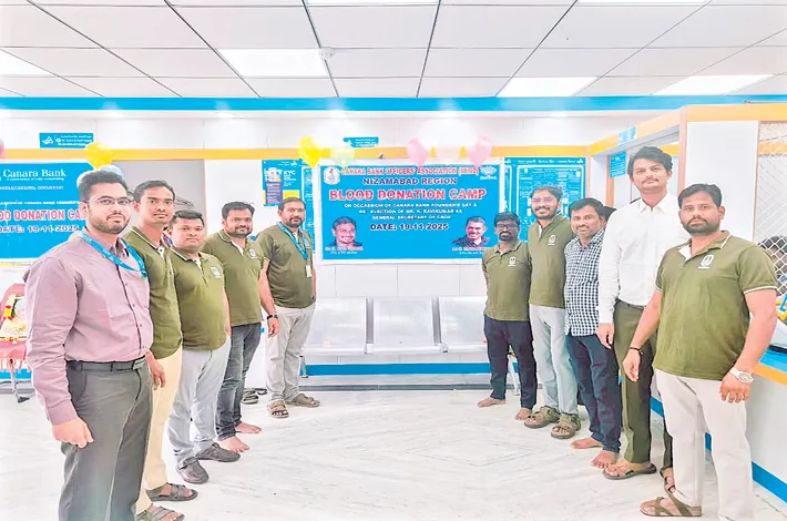 On the occasion of the 173rd founder’s day of Canara Bank, the members of Canara Bank Officer’s Association of Nizamabad Region conducted a blood donation camp on Wednesday at the premises of Gangasthan branch, Nizamabad. On this occasion, a blood donation camp as well as health checkup for the customers nd bank staff was conducted by Nizamabad blood centre.
