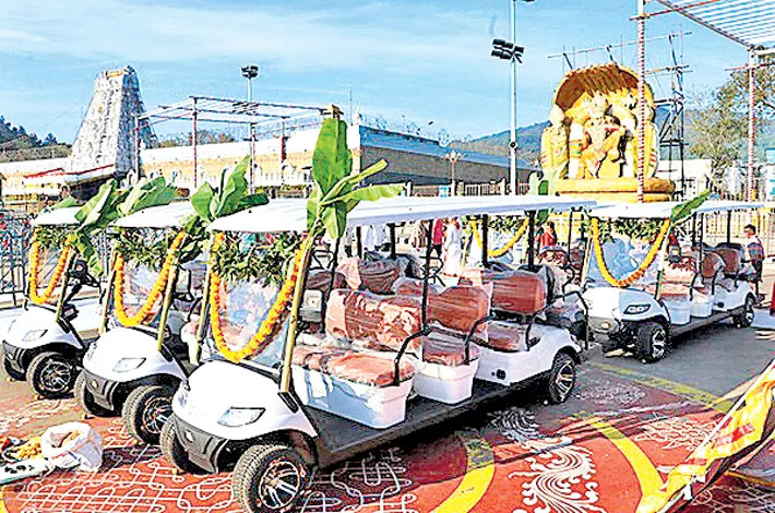 Tirupati: A Chennai-based realtor donated five battery-operated buggies worth Rs 33 lakh to the TTD on Thursday. The donor, Bala Ramajayam, performed special pujas at the Srivari temple before handing over the keys of the vehicles to TTD Additional Executive Officer Ch Venkaiah Chowdary, according to a press release.