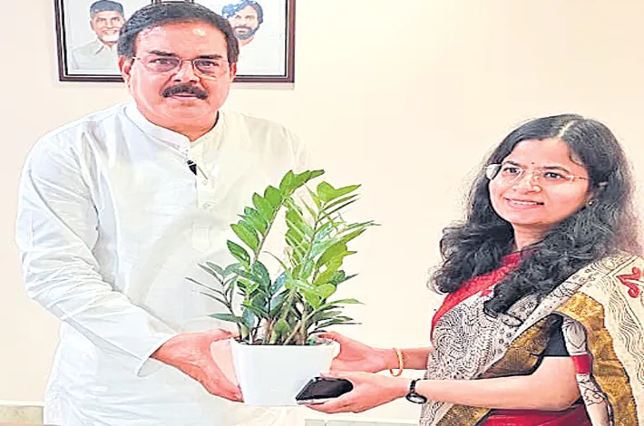Newly appointed Director of the Civil Supplies Department, Srivas Nupur Ajaykumar, IAS, paid a courtesy visit to State Minister for Civil Supplies and Consumer Affairs Nadendla Manohar on Monday at the Civil Supplies Bhavan in Kanuru, Vijayawada.