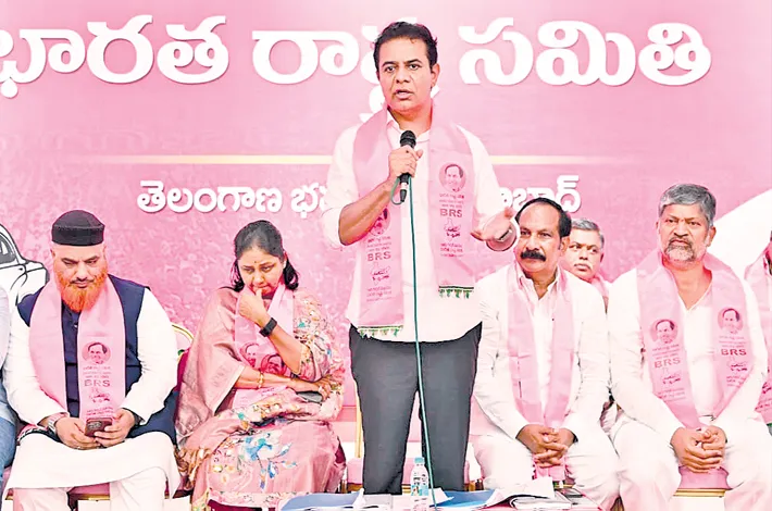 KTR accused Congress of deceiving minorities by failing to nominate an MLC and cancelling programmes like Shaadi Mubarak and minority residential schools.