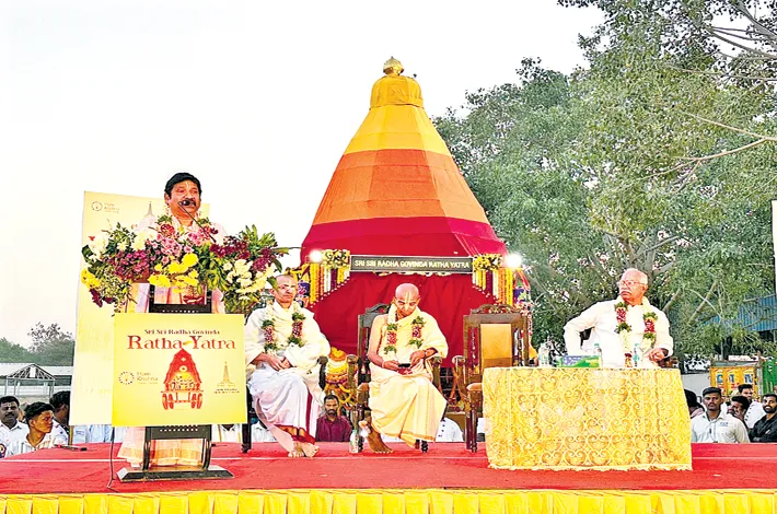 The Hare Krishna Movement, Hyderabad celebrated the grand 4th annual Sri Radha Govinda Ratha Yatra in Kokapet on Saturday, drawing thousands of devotees into a display of devotion, tradition and communal harmony. The decorated chariot carrying the divine Deities of Sri Sri Radha Govinda was pulled with enthusiasm by devotees from all walks of life, accompanied by sankirtans and the generous distribution of prasadam throughout the procession.