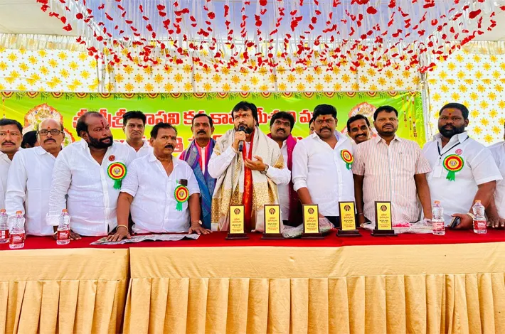 Uppala Srinivas Gupta attended as the chief guest and extended greetings to the Arya Vysya community on the birth anniversary of Sri Vasavi Kanyaka Parameswari.