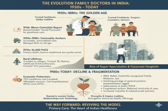 Rooted in ancient traditions, the concept of the family physician—known as the Vaidya in classical times—became a cornerstone of India’s healthcare system in the decades following Independence. From the 1950s to the 1980s, family doctors served as community anchors, delivering accessible and personalized care long before super-specialties and corporate hospitals dominated healthcare.