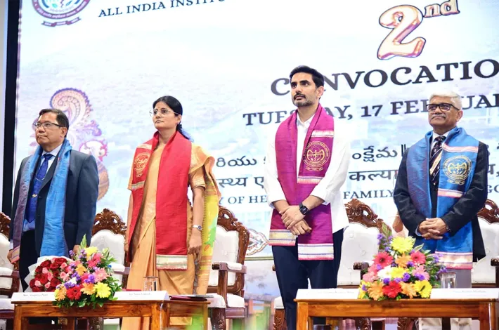 Lokesh described the convocation as more than a ceremonial milestone, calling it a transition from student life to the responsibility of becoming guardians of human life. Highlighting the institution’s journey, he said AIIMS Mangalagiri, which began modestly in 2015, has evolved into a comprehensive medical institution with over 1,300 students across undergraduate, postgraduate, super-specialty nursing and allied health sciences programmes.