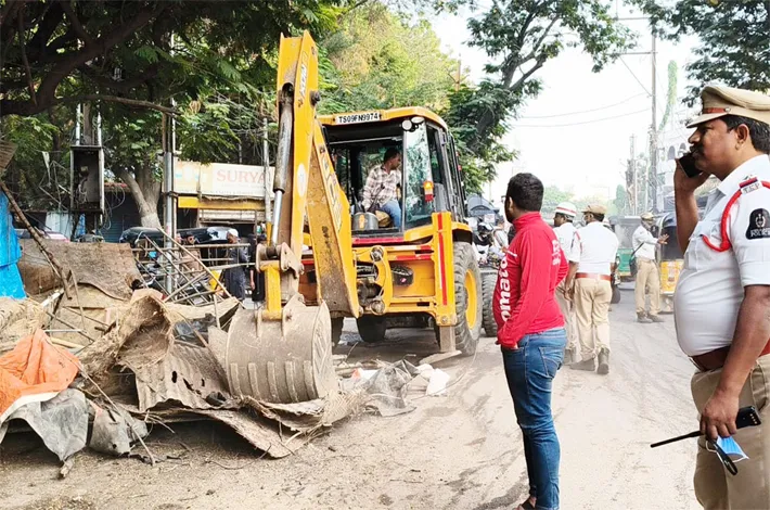 The special drive was carried out in all six GHMC zones in coordination with traffic and law-and-order police. Footpaths and road margins occupied by permanent and temporary structures were targeted, with one major road stretch identified in each zone for systematic clearance.
