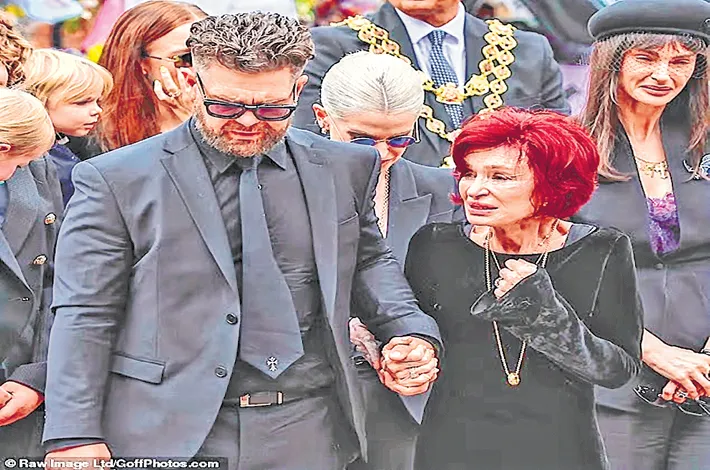 The hearse holding Osbourne’s coffin made its way down Broad Street and past the Black Sabbath Bridge, where his widow, Sharon, and children Jack and Kelly got out to look at the overwhelming amount of goodbye messages left there, Variety reported. Sharon was visibly emotional and leaned on her children for support as they walked hand in hand. After spending about five minutes at the bridge, they turned to the crowd and Sharon flashed Ozzy’s signature peace sign gesture.