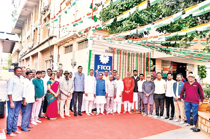 The Federation of Telangana Chambers of Commerce and Industry (FTCCI) celebrated the 77th Republic Day with patriotic fervor at its headquarter in Red Hills. R. Ravikumar, President, FTCCI, unfurled the National Flag in the presence of K. K. Maheshwari, Senior Vice President; Veena, Secretary; Suresh Singhal, Immediate Past President; past presidents, committee chairpersons, members, and staff.