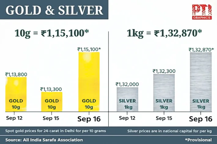 According to the All India Sarafa Association, the precious metal of 99.5 per cent purity appreciated Rs 1,800 to hit a record high of Rs 1,14,600 per 10 grams (inclusive of all taxes).