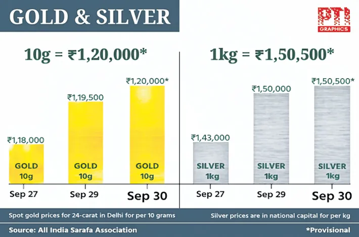 "Gold prices surged as investors turned jittery amid looming prospects of a US government shutdown after talks between Trump and congressional leaders ended without agreement on short-term funding. "This unsettled investors as it could delay the release of the official jobs report and complicate the Federal Reserve's policy trajectory," said Kaynat Chainwala, AVP Commodity Research, Kotak Securities.