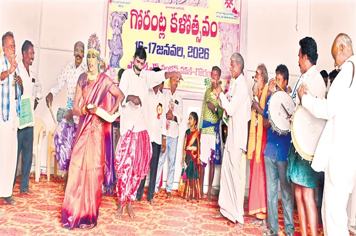 The two-day Gorantla Kalotsavam(Festival of Arts) held at Gorantla in Sri Sathya Sai district of Andhra Pradesh has infused new enthusiasm among the artists. The Cultural festival held under the aegis of Viswambhara Cultural Society and Andhra Pradesh Creative and Cultural Society, and presided over by historian MyNaa Swamy, provided a platform for rural artists. The SLN function hall was filled with the sounds of kommulu(horns), urumulu, tappetlu, tabla, harmonium, and bhajans.