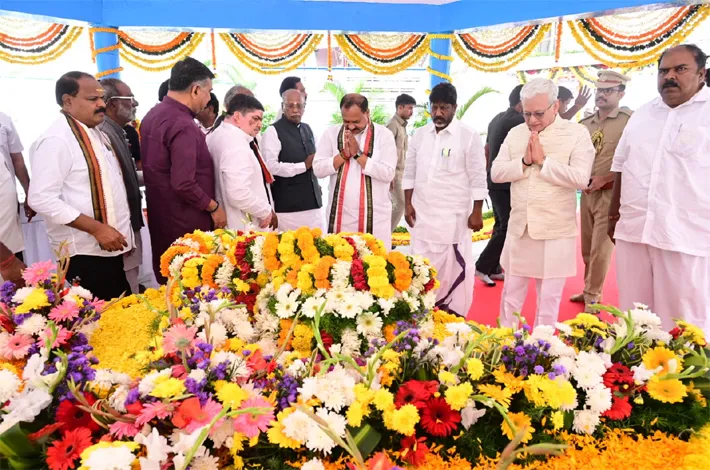 Hyderabad: Governor Jishnu Dev Varma offered floral tributes at the Bapu Ghat, Hyderabad, on Friday, on the occasion of Father of the Nation Mahatma Gandhi’s death anniversary. Deputy Chief Minister Bhatti Vikramarka, Transport Minister Ponnam Prabhakar, TPCC President Mahesh Kumar Goud, MLAs, MLCs, other elected representatives and senior officials from various departments also paid floral tributes at Bapu Ghat in Hyderabad.