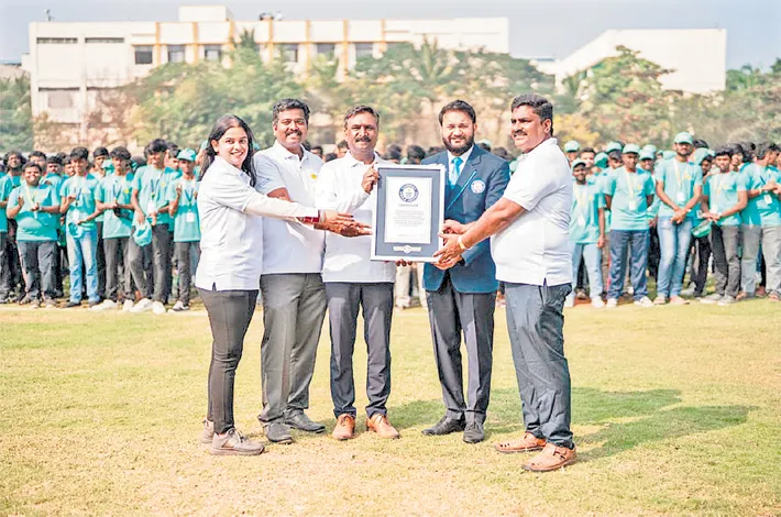 Chennai Institute of Technology (CIT), Chennai, in association with Bisleri International Pvt. Ltd., has created a Guinness World Record for the Largest Human Recycling Logo Formation, highlighting the importance of environmental awareness and responsible waste management. The record-setting initiative saw the participation of over 5,037 students, comfortably surpassing the earlier Guinness World Record of 3,373 participants set by the Central Institute of Plastics Engineering and Technology (CIPET) in Chennai in January 2019.