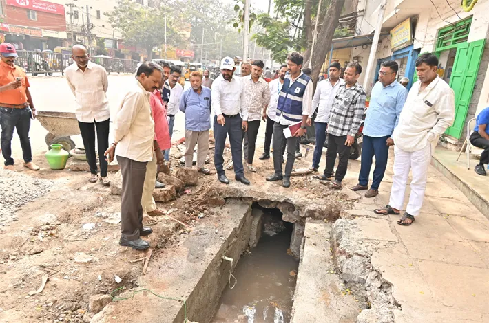 Hyderabad Metropolitan Water Supply and Sewerage Board (HMWSSB) Managing Director Ashok Reddy inspected problem-prone areas under O&M Division-4 in Begum Bazar to review long-pending sewerage issues and ongoing repair works.