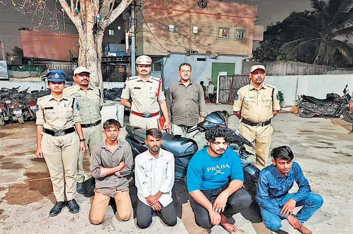 Four young men were taken into custody for performing dangerous bike stunts in Attapur, endangering public safety. The incident occurred on March 27, around 8 p.m., when police constable C. Sabitha, along with colleague Md. Ahmed, was on patrol from pillar no. 143 towards Aramghar Road. They spotted a Honda Dio two-wheeler (TS 09 FL 1262) being ridden recklessly, with the rider attempting to evade the police while performing stunts in public areas.