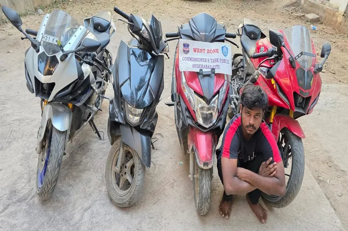 Four bikes were seized from their possession: a Honda Dio (TS08HP4286), Yamaha R15M BSVI-PH2 (TS31K4448), Yamaha R15 (AP40AM0604), and an Avenis (AP39QF6843). Rao confessed to multiple theft cases registered at Miyapur, Chanda Nagar, and Gachibowli police stations.