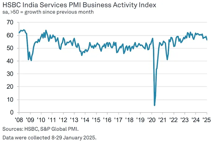 Pranjul Bhandari, Chief India Economist at HSBC, said: “India’s services sector lost growth momentum in January, although the PMI remained well above the 50-breakeven level. The business activity and new business PMI indices eased to their lowest levels since November 2022 and November 2023 respectively.