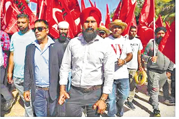 Outside the court, dozens of union members, including Sikh workers, demonstrated against the system of exploitative, underpaid migrant labor in Italy’s agricultural sector, called “caporalato”.