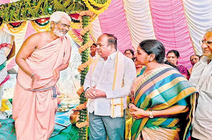 The Kalyanam of Bhudevi Sametha Lord Venkateswara was celebrated grandly at the Sri Venkateswara Swamy Temple in Sikindrapur village, Jakranpalli Mandal, on Friday. Dr. R. Bhoopathi Reddy, the MLA from Nizamabad Rural constituency, accompanied by his family, actively participated in the festivities. Dr. Bhoopathi Reddy and his wife performed special pujas and received blessings from Vedic scholars.