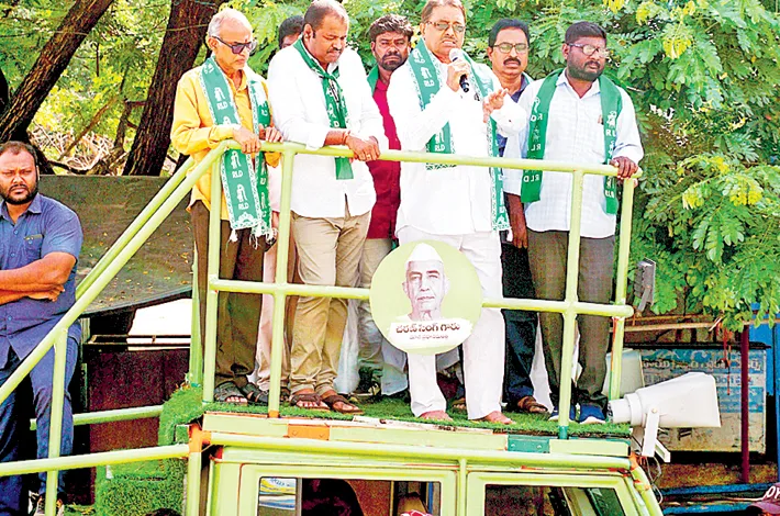 Telangana State Rashtriya Lok Dal (TRLD) President and Former MLC Kapilavai Dileep Kumar’s ‘Social Awareness Rath Yatra’ reached Nagarkurnool on Saturday, drawing a large crowd of supporters and local leaders.