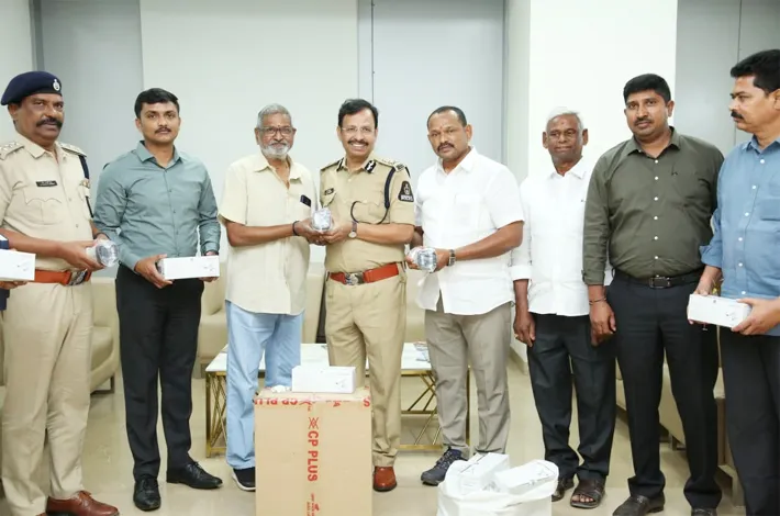 The cameras were handed over by the Karanbagh Colony Association, led by President Myladri Srinivas and Secretary Sudershan Gaddam, in the presence of V.C. Sajjanar, IPS, Commissioner of Police, Hyderabad.