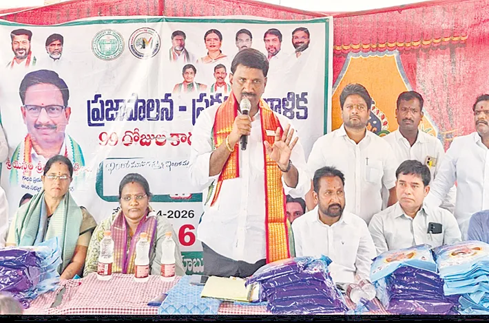 He urged people to actively participate in the 99-day action plan and support the development of the municipal corporation. After the programme, sarees were distributed to women beneficiaries. The event was attended by Municipal Assistant Commissioner Rajanna, DMC Lakshmi, Congress leaders, ward officials, government staff, party workers, women participants, and local residents.