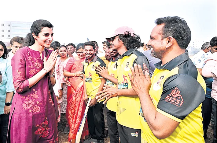 The event was formally inaugurated by Nara Brahmani, who paid floral tributes to the statue of N. T. Rama Rao before declaring the tournament open. She later entered the ground, interacted with players, conveyed her best wishes, and even played a few shots with the bat, drawing loud applause from the crowd. She also watched the opening match for a while.