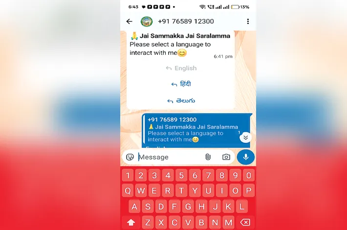 All information provided through the WhatsApp Chatbot is also integrated with the official Medaram Jatara website and mobile application, ensuring uniform, accurate and up-to-date information across all digital platforms. The initiative reflects the government’s commitment to leveraging technology to ensure a safe, smooth and devotee-friendly Medaram Jatara experience.