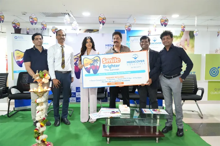 On the occasion of World Oral Health Day, Medicover Hospitals organized a dental health awareness program at its Hitech City unit. Under the theme “Smile Brighter This Summer,” special dental packages for families were launched, along with a free dental check-up initiative for senior citizens. The program was inaugurated by movie stars Nabha Natesh, Raja Ravindra; along with Dr. A. Sharath Reddy, Executive Director & Senior Interventional Cardiologist and P. Hari Krishna, Executive Director, Medicover Hospitals India.