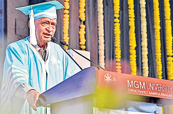 The 4th Convocation Ceremony of MGM University was conducted on Saturday at MGM Sports Stadium, Chhatrapati Sambhajinagar, in the presence of Prof. K.K. Aggarwal. Padma Vibhushan Prof. M.M. Sharma, Chancellor Ankushrao Kadam, Vice-Chancellor Dr. Vilas Sapkal, members of the Governing Council Dr. P.M. Jadhav, Dr. Nitin Kadam, Dr. Amardeep Kadam, Bhausaheb Rajale, Dr. Ranjit Kakkad, Registrar Dr. Ashish Gadekar, Management Council members Dr. Shashank Dalvi, Dr. Harirang Shinde, Dr. Prapti Deshmukh, Dr. Rekha Shelke, Dr. John Chelladurai, Prof. Parvati Dutta, Dr. Raneet Kishor, Dr. Vijaya Musande, Dr. Parminder Kaur, Chief Finance and Accounts Officer Rashi Jain, Shubha Mahajan, Deans of various faculties, members of the Academic Council, and several other dignitaries attended the event.