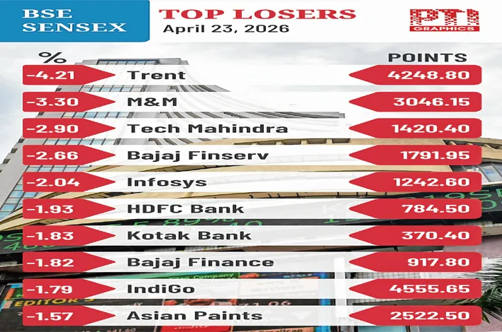 From the Sensex pack, Trent, Bajaj Finserv, Tech Mahindra, Mahindra & Mahindra, Infosys and HDFC Bank were among the major laggards. In contrast, Adani Ports, Larsen & Toubro, Sun Pharma, Bharti Airtel and Bharat Electronics were the winners.