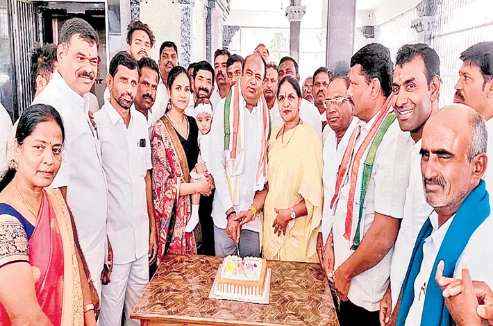 Nizamabad Rural MLA Dr Bhupathi Reddy celebrated his birthday in a grand manner at the Dispalli Mandal headquarters on Thursday. The day saw special prayers held at local temples, followed by a cake-cutting ceremony.