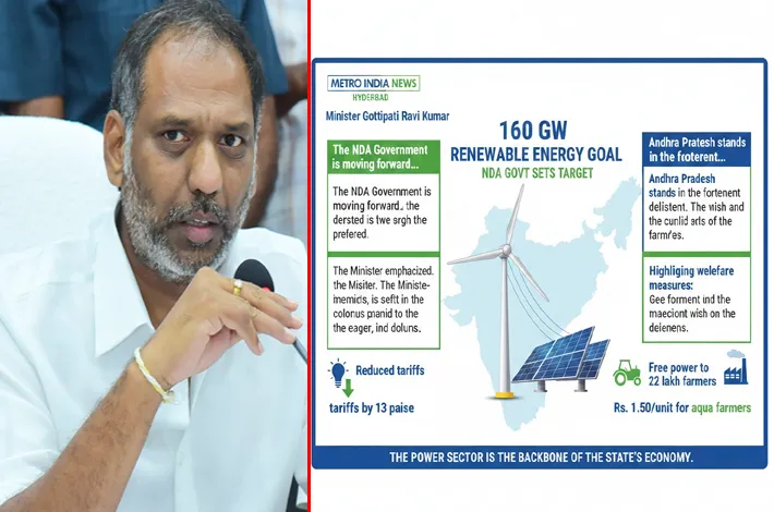 The NDA Government is moving forward with a target of generating 160 gigawatts of renewable power under the Integrated Clean Energy Policy, said State Energy Minister Gottipati Ravi Kumar. Speaking during the Budget discussion in the Assembly, the Minister stated that the government is developing the power sector with a focus on long term sustainability, expansion of renewable energy generation, and protection of consumer interests.