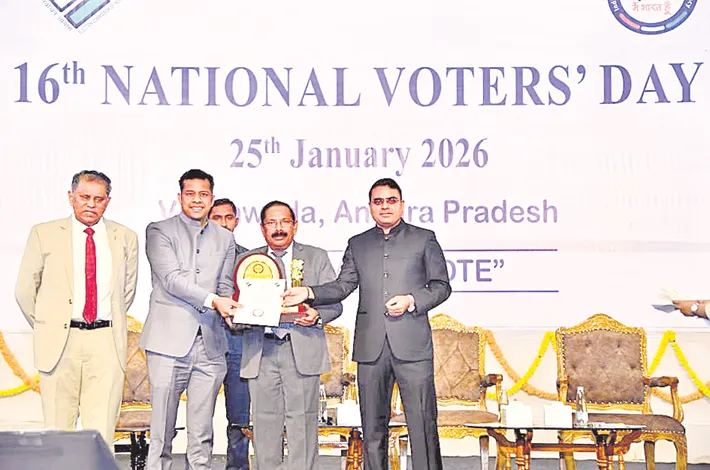 Nellore District Collector Himanshu Shukla has been awarded the state-level award for the effective implementation of the best election mapping in the Special Intensive Revision (SIR) process. The 16th National Voters' Day was celebrated at Tummalapalli Kalakshetra in Vijayawada on Sunday. The award was received by the District Collector from the hands of Chief Secretary K.Vijayanand.