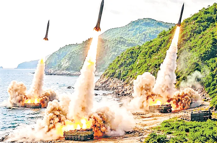 Seoul: North Korea launched several short-range ballistic missiles toward the sea on Sunday, drawing swift condemnation from its neighbours. The missiles were fired from the Sinpo area, an eastern coastal city known for its submarine shipyards, and flew nearly 140km before landing in the water.