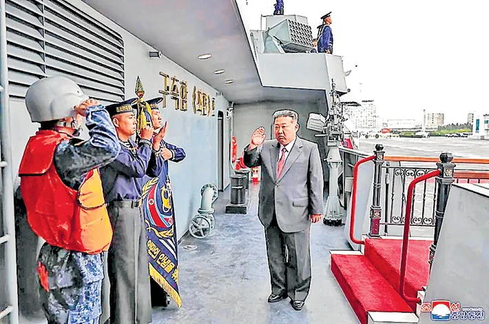 North Korean leader Kim Jong-un has visited the nation's first 5,000-tonne destroyer, calling for bolstering the naval combat force to "thoroughly" deter and counter the enemy's provocations, state media reported on Monday.