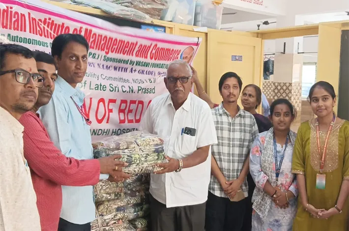 Khairatabad: In memory of C.N. Prasad, Senior Faculty of the Commerce Department at IIMC College, who recently passed away, the college NSS Units 1 & 2 and the Social Responsibility Committee organized a service activity on Monday. As part of the program, 65 blankets were distributed free of cost to Janahita Seva Trust, which works to support patients and their attendants coming from across the state for various treatments at Gandhi Hospital in Musheerabad.